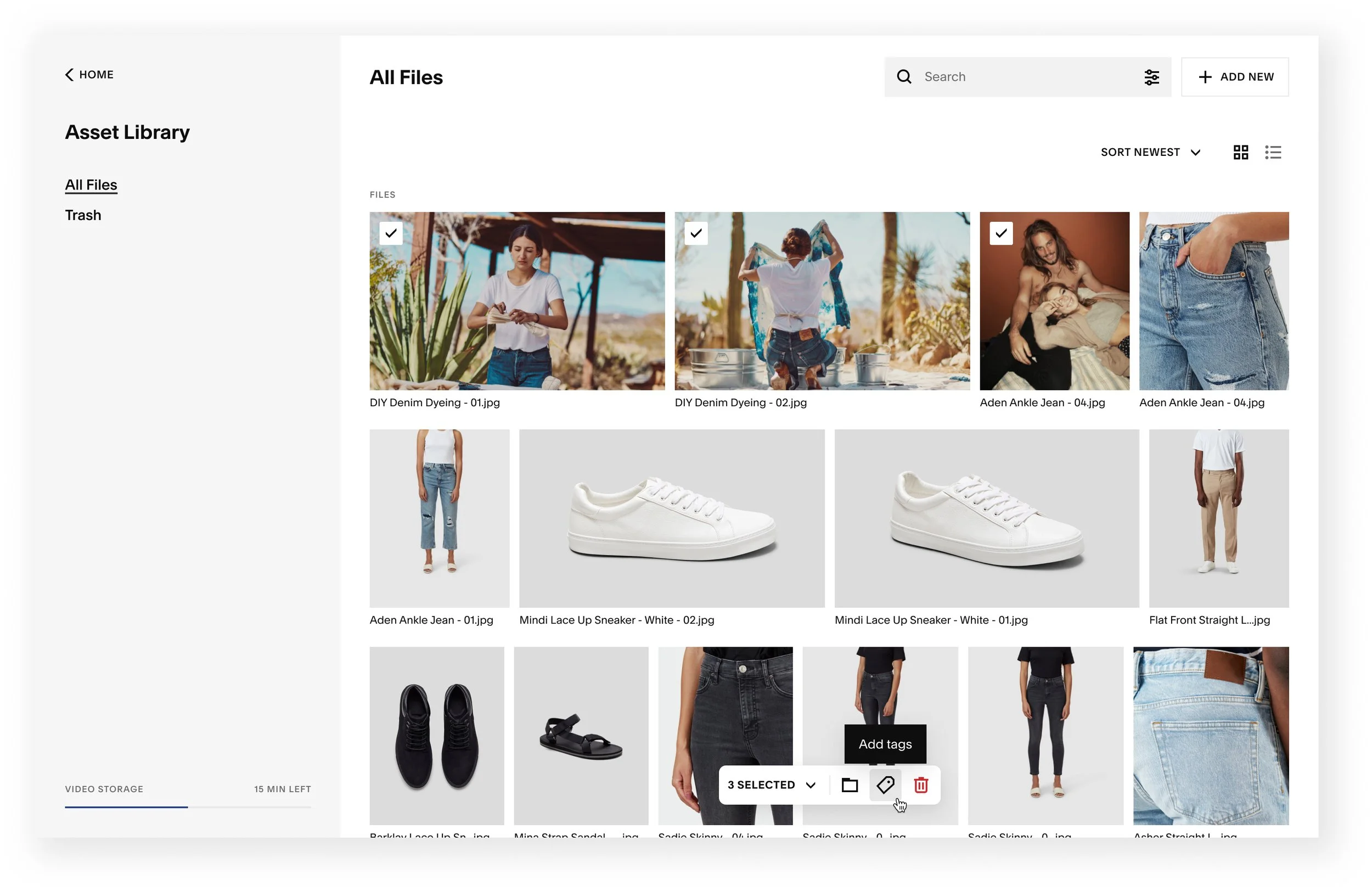 Users can located their assets by filtering through their library with an area that surfaces all of the tags they’ve generated.